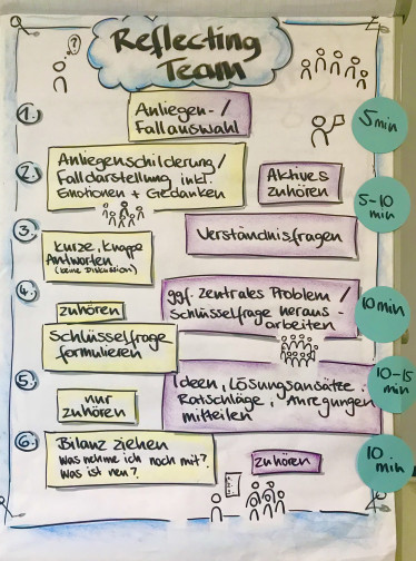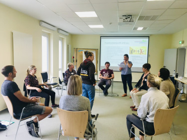 Am Nachmittag der Veranstaltung gab es Raum für eine kollegiale Fallberatung. Das ist ein klar strukturierter Rahmen, in dem eine Anliegen einer Person mit der Expertise aus der Runde besprochen wird und die fallbeschreibende Person Unterstützung, Ideen und Lösungsansätze aus der Gruppe erhält. In der Feedbackrunde wurde deutlich, dass dieser Teil des Tages den Respekt Coaches besonders gut gefallen hat. Viele meldeten rück, wie wertvoll die Methode war, um das durchaus komplexe und emotionale Anliegen der fallbeschreibenden Person zu bearbeiten. Dankbar waren die Respekt Coaches neben dem wertschätzenden Austausch und der tollen Arbeitsatmosphäre vor allem für die Vernetzung und den Austausch mit anderen Kolleg:innen in ländlichen Räumen. Auch das Essen und der schöne Seminarort wurden gelobt. Hingewiesen wurde darauf, dass eine Veranstaltung mit hohem Reflexions- und Austauschanteil vor allem für Mitarbeitende, die neu im Respekt Coach-Programm sind sehr dienlich ist, von der Fallberatung jedoch auch erfahrene Respekt Coaches profitieren.