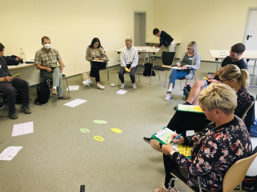 Am 8. September 2022 kamen in der Heimvolkshochschule am Seddiner See elf Respekt Coaches aus zumeist ländlichen Regionen Brandenburgs und Sachsen-Anhalts unter dem Titel „Best Practices Austausch - Respekt Coach Programm im ländlichen Raum und Einzugsgebieten“ zu einem Workshop zusammen. Lucy Thomas (HVHS Seddiner See) und Franziska Holze (Andreas Hermes Akademie), beide Jugendbildungsreferent:innen im Projekt „Abgehängt? Eingeholt! Jung, ländlich & vielfältig“ moderierten durch den Tag, bei dem Vernetzung, Wissensaustausch, Reflexion der bisherigen und Planung der zukünftigen Arbeit und vor allem die kollegiale Unterstützung im Fokus stand.