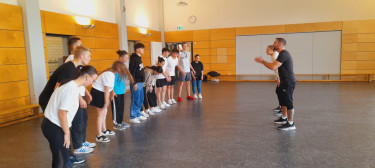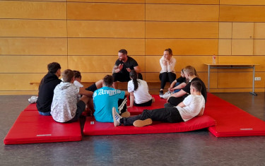 Zusammen mit Christian Wagner vom Martial Mates Gym in Hof veranstalteten wir an der Hofecker Mittelschule in Hof zwei Workshops an zwei Tagen mit dem Titel „Stark gegen Extremismus“. Die Jugendlichen erlebten einen Mix aus klassischem Anti-Aggressionstraining, Kampfsport-Schnupperkurs, Selbstverteidigung und natürlich politischer Bildung. Die Rahmung war von Anfang an klar: Niemand soll verletzt werden. Jeder handelt verantwortungsvoll und achtet auf seinen Übungspartner. Sport und Spaß stehen im Vordergrund. Gestartet sind wir zunächst mit einigen Aufwärmübungen. Anschließend haben die Jugendlichen in Partnerübungen unterschiedliche Elemente aus Box-, Kickboxsport und MMA erlernt und geübt. Unser Trainer nahm bei jeder Übung Bezug darauf, wozu diese Übung gut ist und was hierbei gelernt wird. Das waren vor allem Selbstbeherrschung, Verteidigung, Auspowern, Selbstbewusstsein stärken, Grenzen setzen und die Grenzen anderer respektieren. Sport gibt Jugendlichen viele positive Impulse: Erfolgserlebnisse, Spaß, körperliches Auspowern und Fitness, Selbstbeherrschung und Selbstbewusstsein. Während des körperlich-aktiven Teils des Workshops geht es auch darum den richtigen Umgang mit Frust, Aggressionen und Wut zu lernen. Sport kann hierbei ein wichtiges Ventil sein. Ziel war es die Jugendlichen durch die Kombination von Kampfsportelementen, Selbstverteidigung und inhaltlichen Impulsen in ihrer Lebenswelt zu erreichen und ihnen positive Anreize und Möglichkeiten zu vermitteln ihr Leben sinnvoll und positiv zu gestalten. Zum Schluss gab es noch eine Austauschrunde zu Themen wie Drogenkonsum, Schule und Zukunftsperspektiven. Christian ermutigte die Jugendlichen die Verantwortung für das eigene Leben zu übernehmen, Chancen wahrzunehmen und sich selbst niemals aufzugeben. Er betonte besonders, dass es wichtig ist an sich selbst zu glauben und sich nicht von negativen Einflüssen und Aussagen von Dritten beeinflussen zu lassen. Fazit: Der Workshop ist super angekommen, sowohl bei den Jugendlichen, als auch bei Lehrer*innen und der Schulleiterin! Zwei weitere Workshops für Dezember sind bereits geplant.
