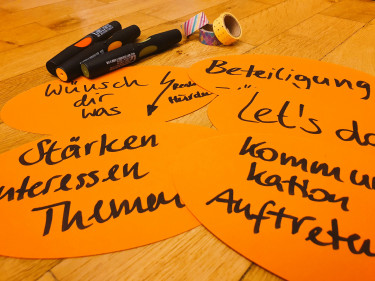 Im ersten Teil des Workshops haben die teilnehmenden Mädchen und jungen Frauen mehr über Beteiligungsmöglichkeiten und -gelegenheiten wie auch über deren Wichtigkeit erfahren. Sie haben sich dann über „Wunsch“-Szenarien, die Realität und mögliche Hürden ausgetauscht – um dann zu überlegen, was ihnen helfen könnte, sich und ihre Meinung stärker einzubringen.
