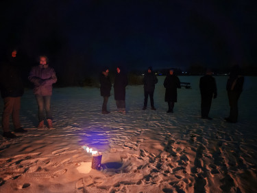 Eine gemeinsame Abendaktion im Wald und am zugefrorenen Seddiner See schuf Raum für einen besonderen Moment der persönlichen Reflexion und des Austausch. Im Anschluss bestand die Möglichkeit für informelle Gespräche in gemütlicher Atmosphäre - ein wichtiger Bestandteil des Fachtags und der Haltung der Heimvolkshochschulpädagogik. Denn gerade in herausfordernden Arbeitskontexten braucht es Orte, an denen Fachkräfte Kraft schöpfen, Erfahrungen teilen und neue Perspektiven entwickeln können. Formell und informell.