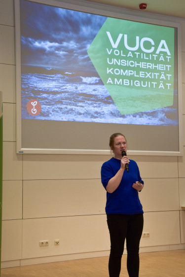 Julia Ilper (freie Trainerin der Andreas Hermes Akademie) sprach über Resilienz und Selbstführung in unsicheren Zeiten und die Frage, wie Fachkräfte in einer „VUCA-Welt“ handlungsfähig bleiben können. Ilper betonte dabei mehrere Ebenen wie die Orientierung durch Werte („Nordstern“), das Anerkennen von Spannungsfeldern und die Wichtigkeit kollegialer Unterstützung, um die Handlungsfähigkeit zu stärken. Entscheidend sei nicht, alles verändern zu können, sondern „den nächsten verantwortbaren Schritt zu gehen“.